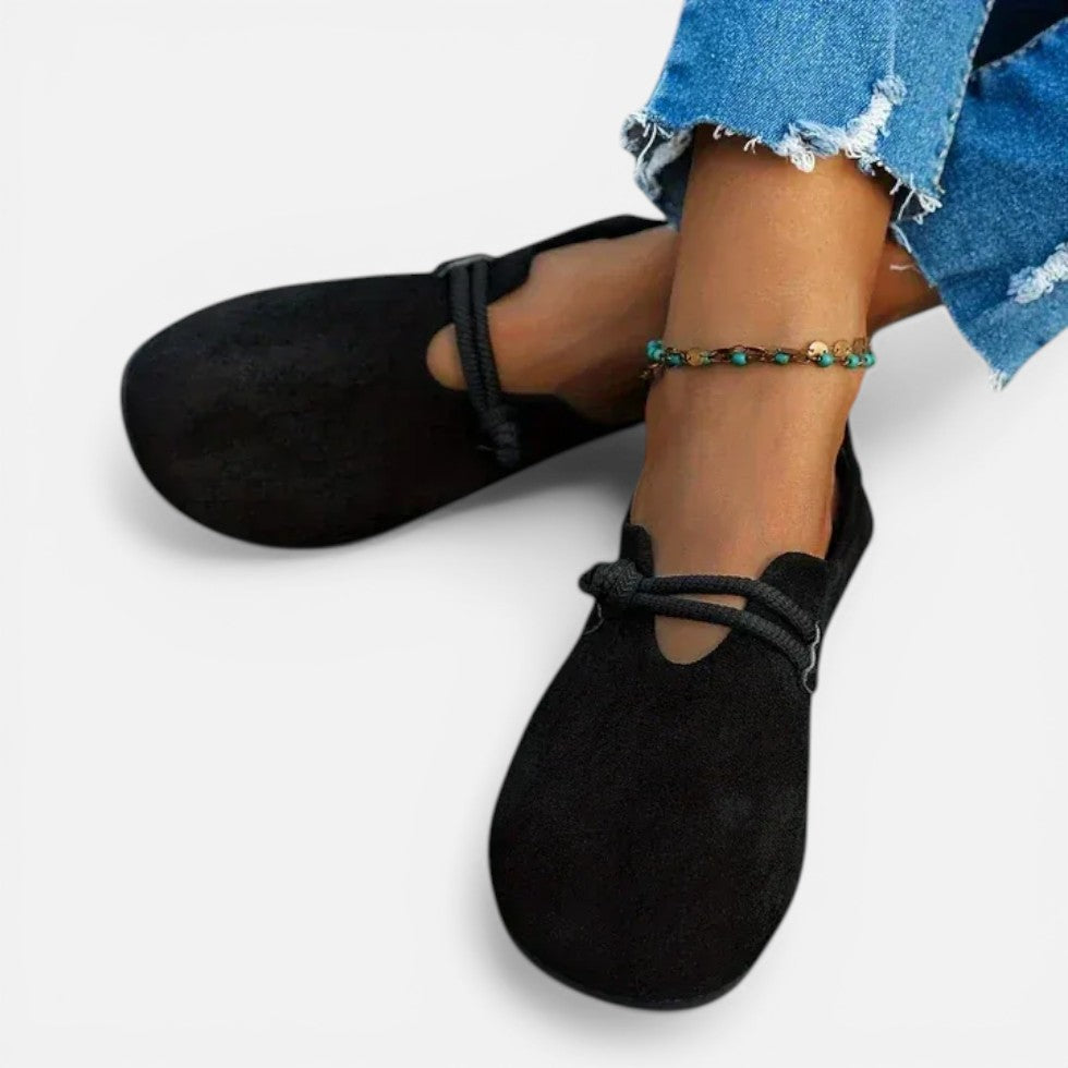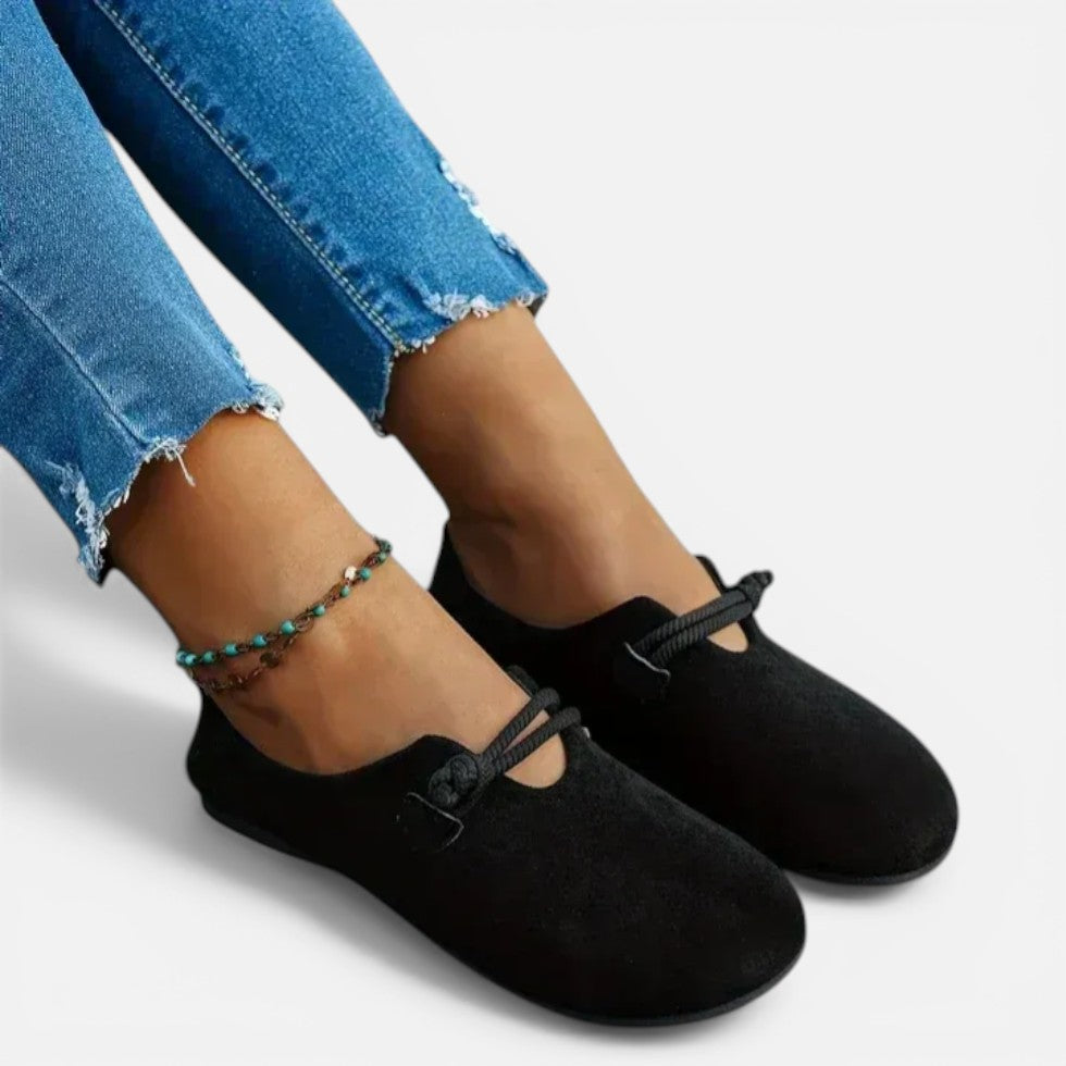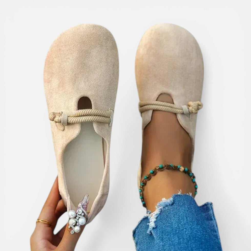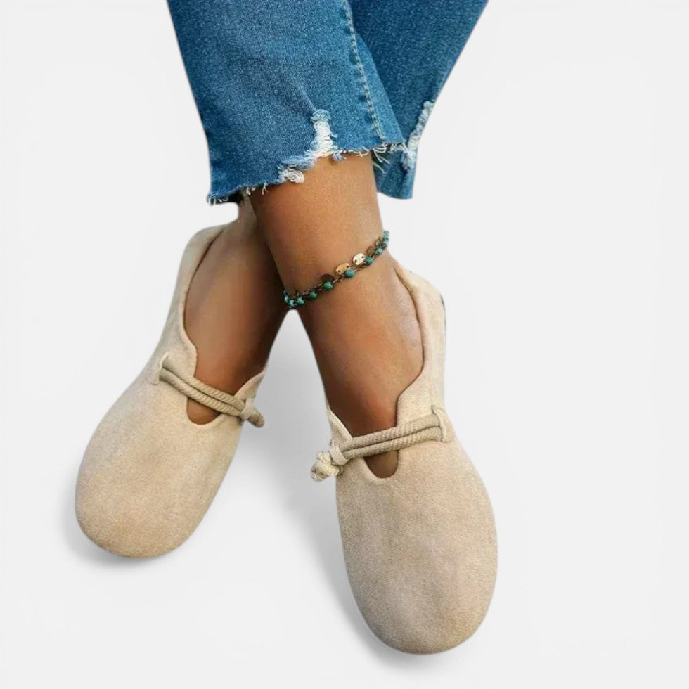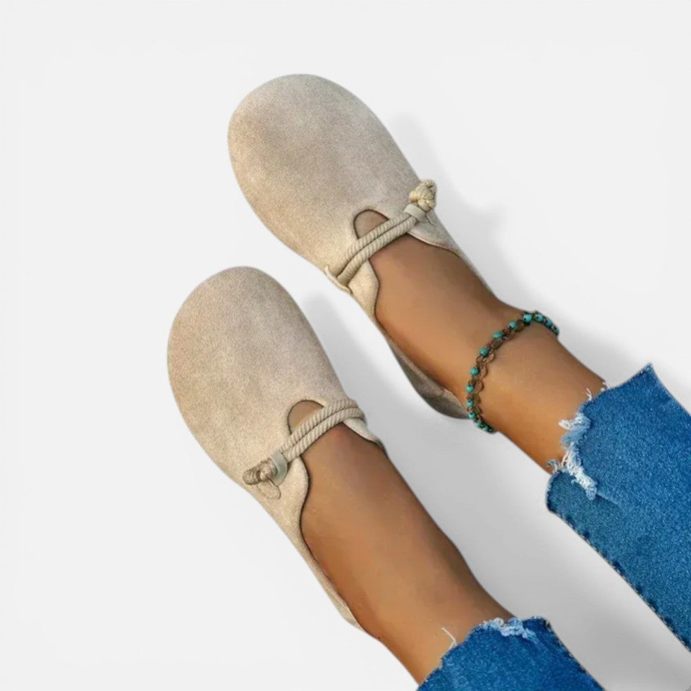 Designed for everyday wear, these slip-on flats feature a rounded toe and a clean, minimal silhouette. The soft textile upper with subtle knot detailing adds a relaxed finish, while the lightweight sole supports easy, all-day use. The simple design pairs well with casual denim, soft tailoring or summer dresses. A practical option for day-to-day styling.
